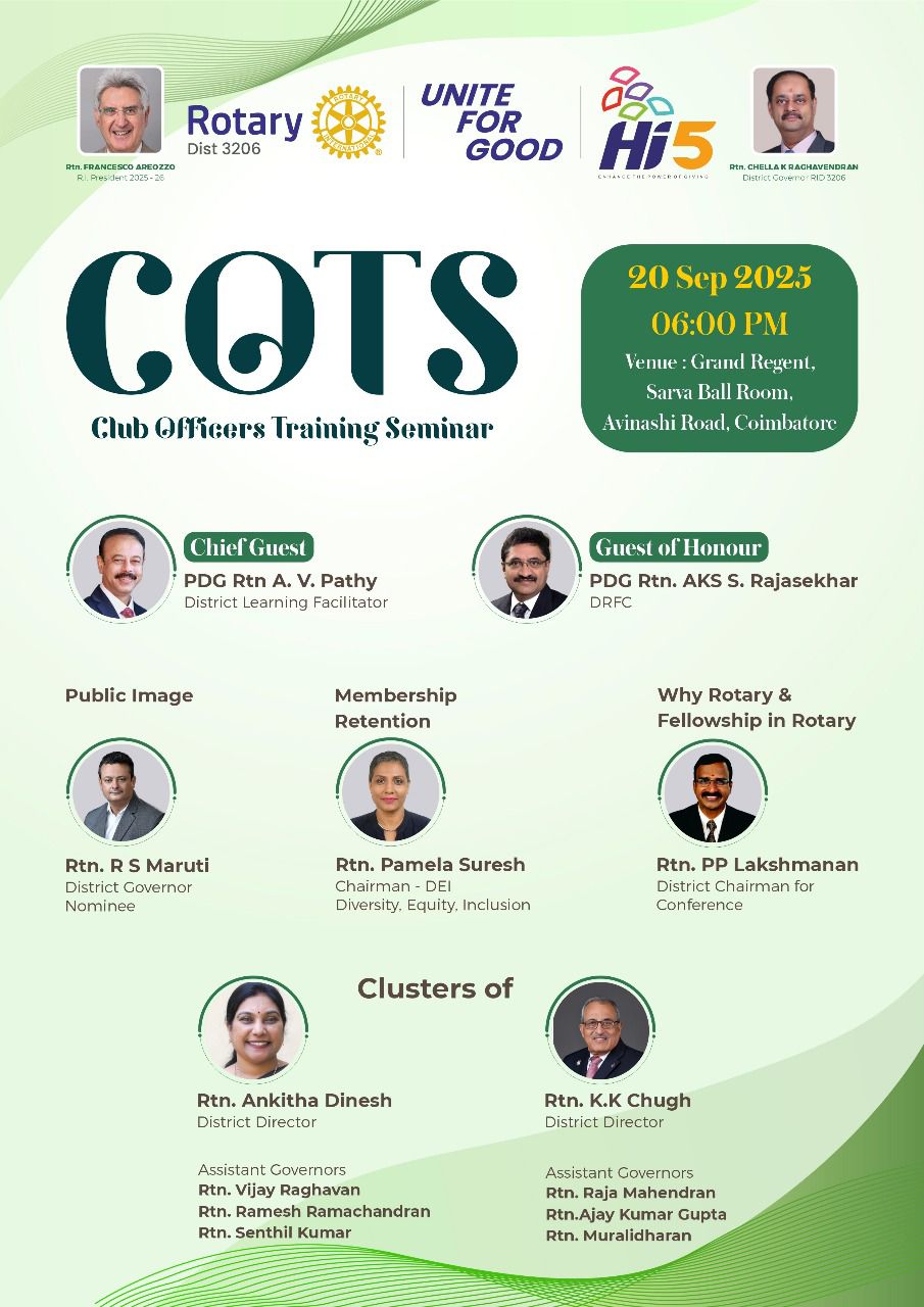 Around eight members of RCC Unicorns actively participated in COTS (Club Officers Training Seminar) organised for the clusters of DD Rtn. Ankita Dinesh and Rtn. K.K. Chugh. The training enhanced leadership skills, Rotary knowledge, and effective club management practices.