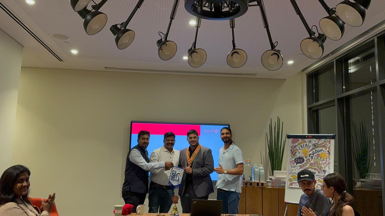 IPP Rtn. PHF K.R. Sudeer and Immediate Past Secretary Rtn. PHF Dinesh Babu represented RCC Unicorns at the Fellowship Meeting of the Rotary Club of Dubai Downtown. As a gesture of goodwill and international fellowship, a Club Flag Exchange was conducted. The RCC Unicorns flag was proudly handed over to Rtn. Devanand Mahadeva of Rotary Club of Dubai Downtown, strengthening global Rotary connections.