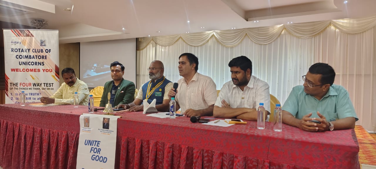 RCC Unicorns hosted the Governor’s Official Club Visit at JK Hotel. The visit began with a closed-door meeting with the District Governor focusing on club projects and progress. DG Rtn. Chella K. Raghavendran shared valuable insights on The Rotary Foundation and Global Grants. This was followed by a Public Meeting, during which three new members were inducted, the Club Bulletin was released, and the club presented its completed projects and future plans.