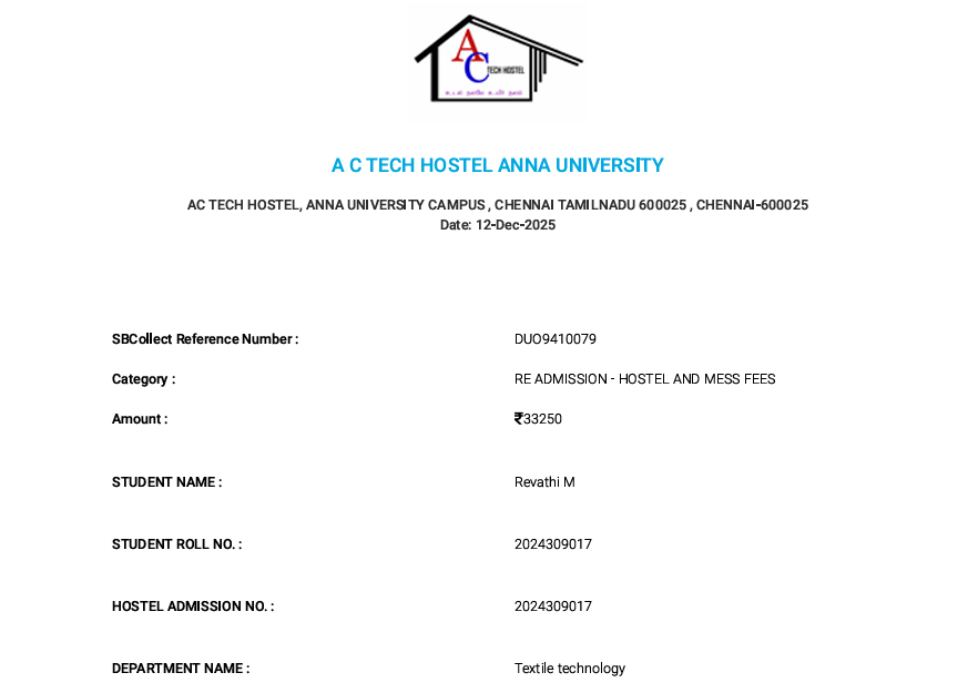 RCC Unicorns extended academic support to Miss Revathi, a student of Anna University, by contributing towards her hostel and semester fees. Coming from a poor and downtrodden family, this support aims to help her continue her education without financial burden. RCC Unicorns is proud to stand by her journey and support her dreams.